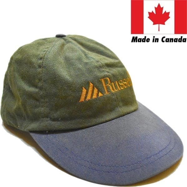 1点物◆カナダ製つば長めRUSSELL刺繍ツートンキャップ古着メンズレディースOKアメカジ90sストリート/スポーツMix帽子ロングビル深緑559258