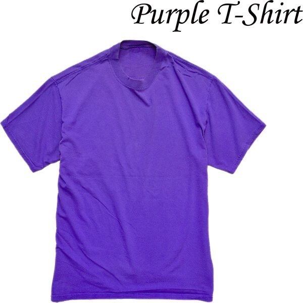 1点物◆USAブランド紫クルーネック無地Tシャツ古着メンズLレディースOKアメカジ90sストリート/スポーツ半袖ポロシャツ中古レトロ丸首559435