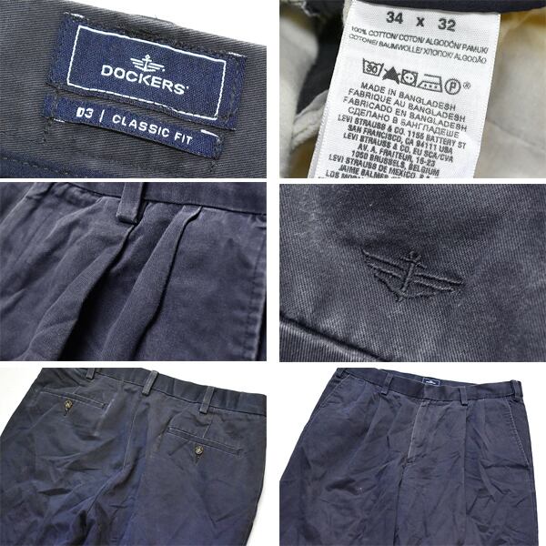 1点物◆リーバイス系ドッカーズ紺チノパンD3スラックス古着メンズ34レディースOKアメカジ90sストリート/ワイドパンツ中古2タック559372