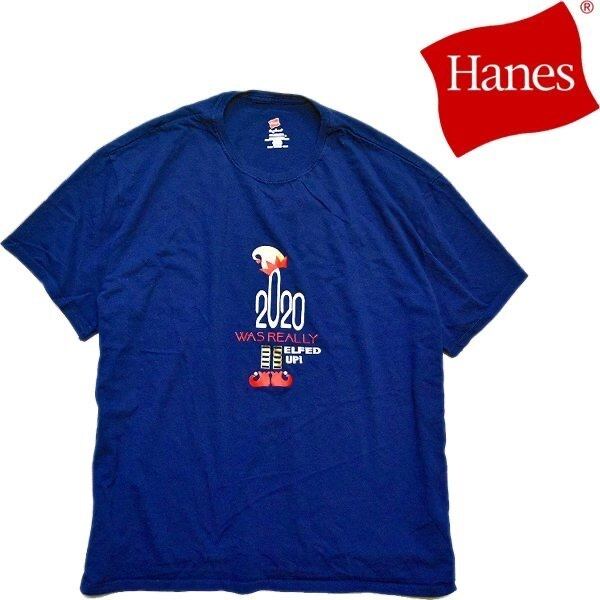 1点物◆ヘインズHANESビッグサイズ紺プリントTシャツ古着メンズレディースOKアメカジ90sストリート/スポーツブランド半袖ポロシャツ559385