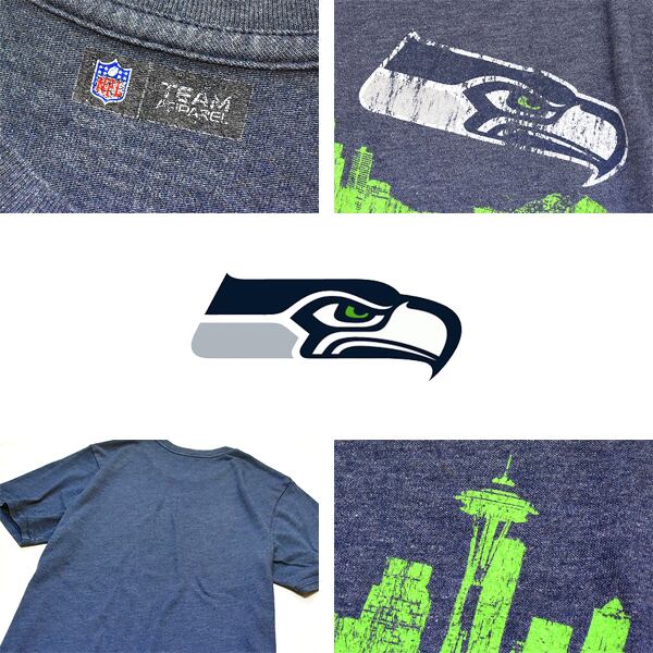 1点物◆アメフトNFLシーホークス紺プリントTシャツ古着メンズMレディースOKアメカジ90sストリートスポーツブランド中古ポロシャツ559405