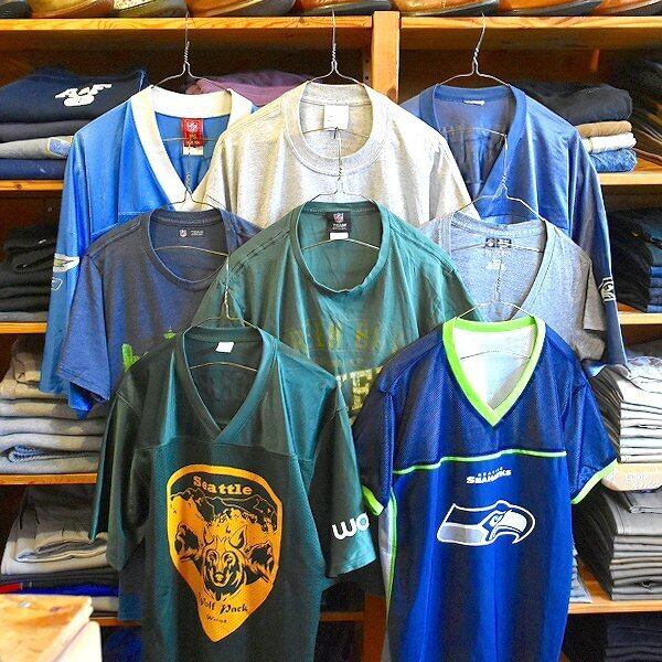1点物◆アメフトNFLシーホークス紺フットボールTシャツ古着メンズSMレディースOKアメカジ90sストリートスポーツブランド/ポロシャツ559404