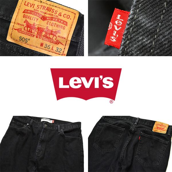 形: 505(ストレート)、 素材: 100%コットン、 色: 黒。