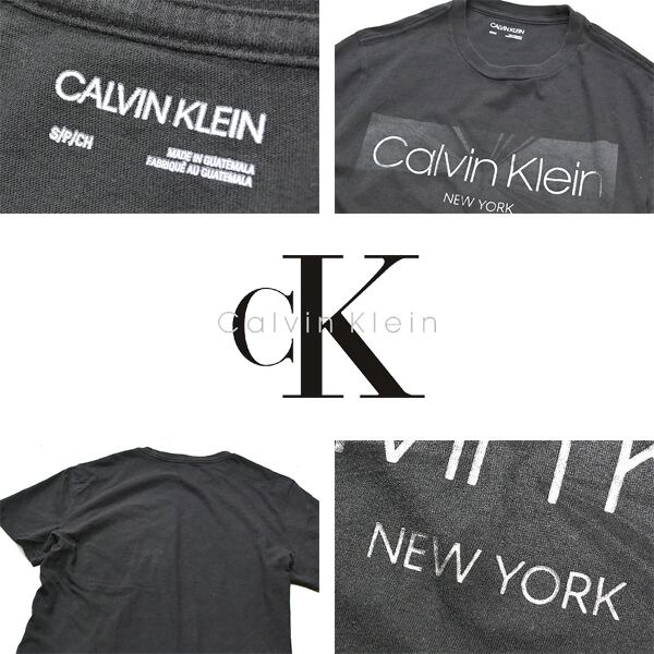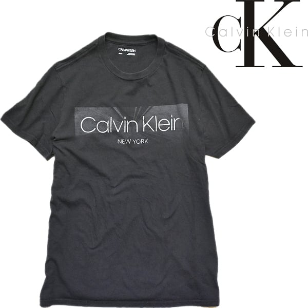 1点物◆カルバンクライン色褪せ黒プリントTシャツ古着メンズMレディースOKアメカジ90sストリートスポーツ半袖ポロシャツ丸首ブランド559533