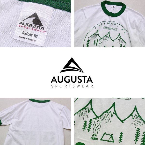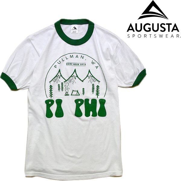 1点物◆AUGUSTA白リンガープリントTシャツ古着メンズMLレディースOKアメカジブランド90sストリート/スポーツ半袖ポロシャツ深緑/中古559597
