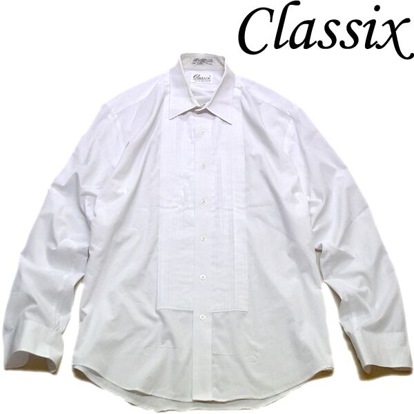 1点物◆CLASSIXプリーツ白ドレスシャツ古着メンズLレディースOKアメカジ90sストリート/スポーツ/ブランドドレスシャツXLビッグサイズ559699