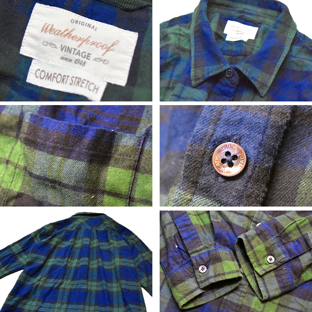 Weatherproofブラックウォッチチェックシャツ長袖ネルシャツ古着レディースメンズOKアメカジ90sストリート/スポーツ紺/深緑370051