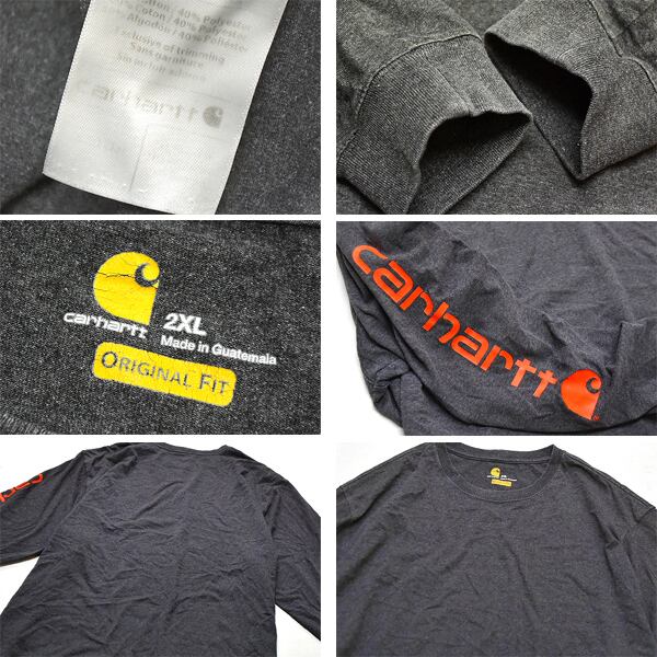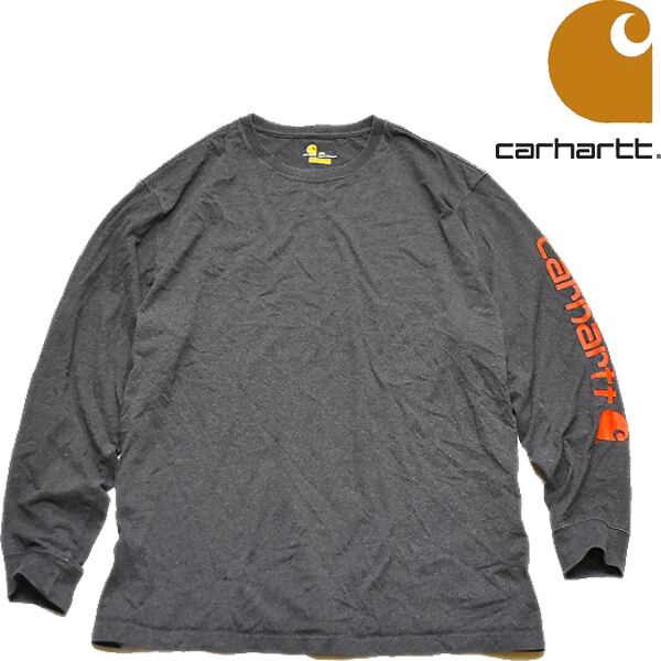 1点物◆カーハートCarhartt袖プリント長袖ロンTシャツ古着メンズXXLレディースOKアメカジ90sストリート/スポーツ/ワークブランド灰370015