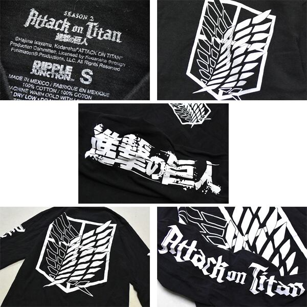 1点物◆TVアニメ進撃の巨人2黒袖プリント長袖ロンTシャツ古着メンズSMレディースOKアメカジ90sストリートスポーツ漫画マンガブランド370140