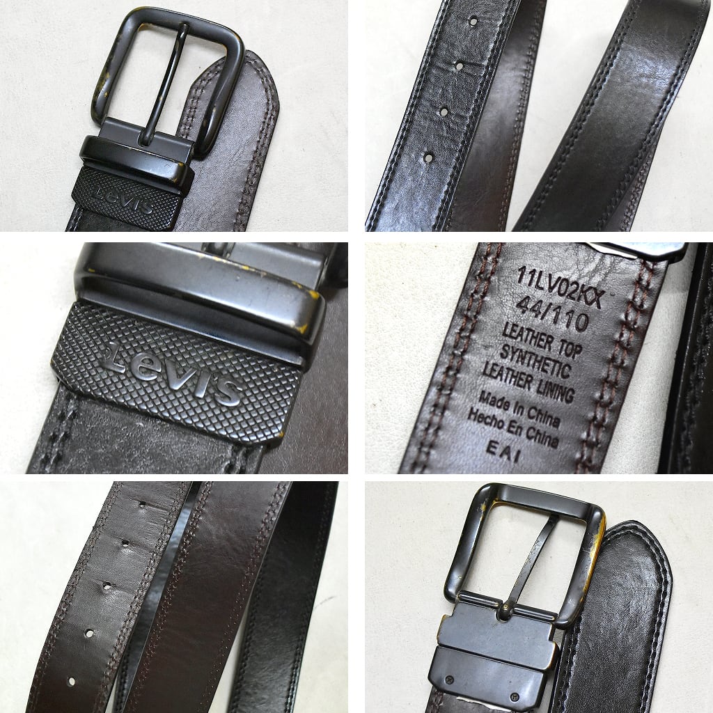 1点物◆リーバイスLevisリバーシブル黒茶バックル付きレザーベルト古着メンズ2XLレディースOKアメカジ90sストリート/スポーツMix本革370163
