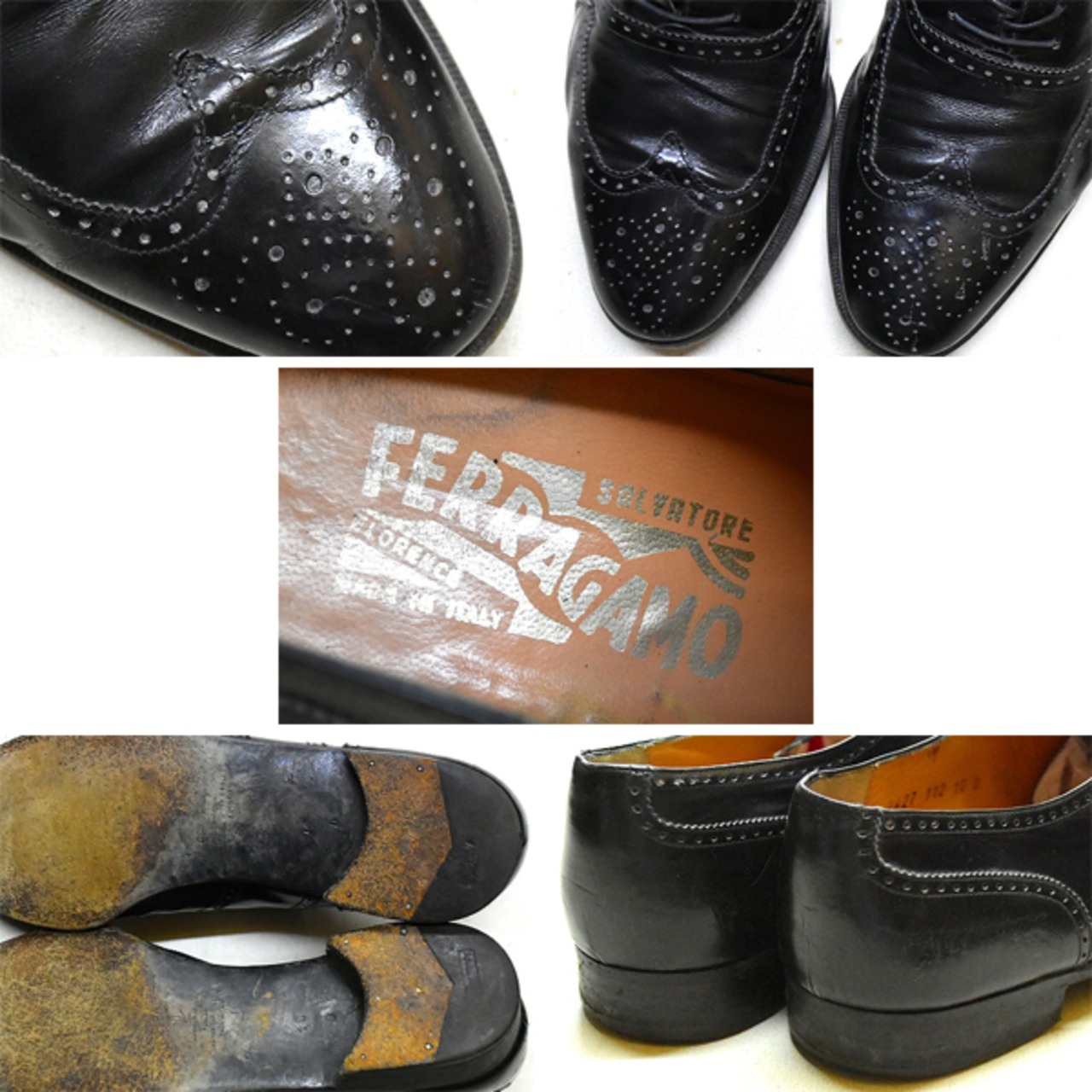 1点物◆イタリア製80s黒フェラガモ革靴レザーシューズ古着メンズ28レディースOKアメカジ90sストリートMixブランド中古ビンテージ370244