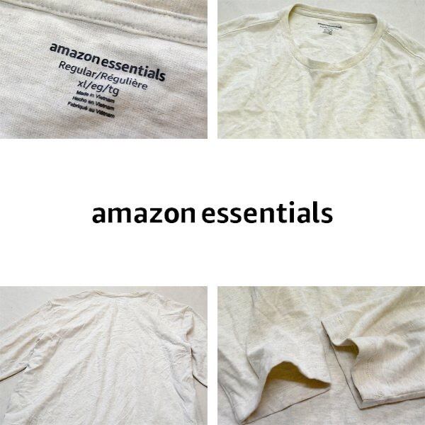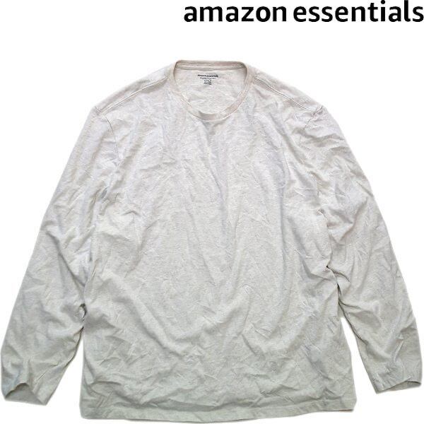 1点物◆アマゾンエッセンシャルズ長袖ベージュ無地ロンTシャツ古着メンズ2XLレディースOKアメカジブランド90sストリート/スポーツ370323