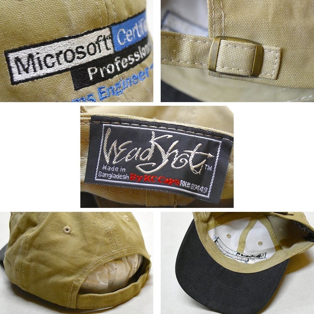 1点物◆マイクロソフト企業ベージュ黒ツートンキャップ帽子/古着メンズレディースOKアメカジブランド90sストリート/スポーツ野球370344