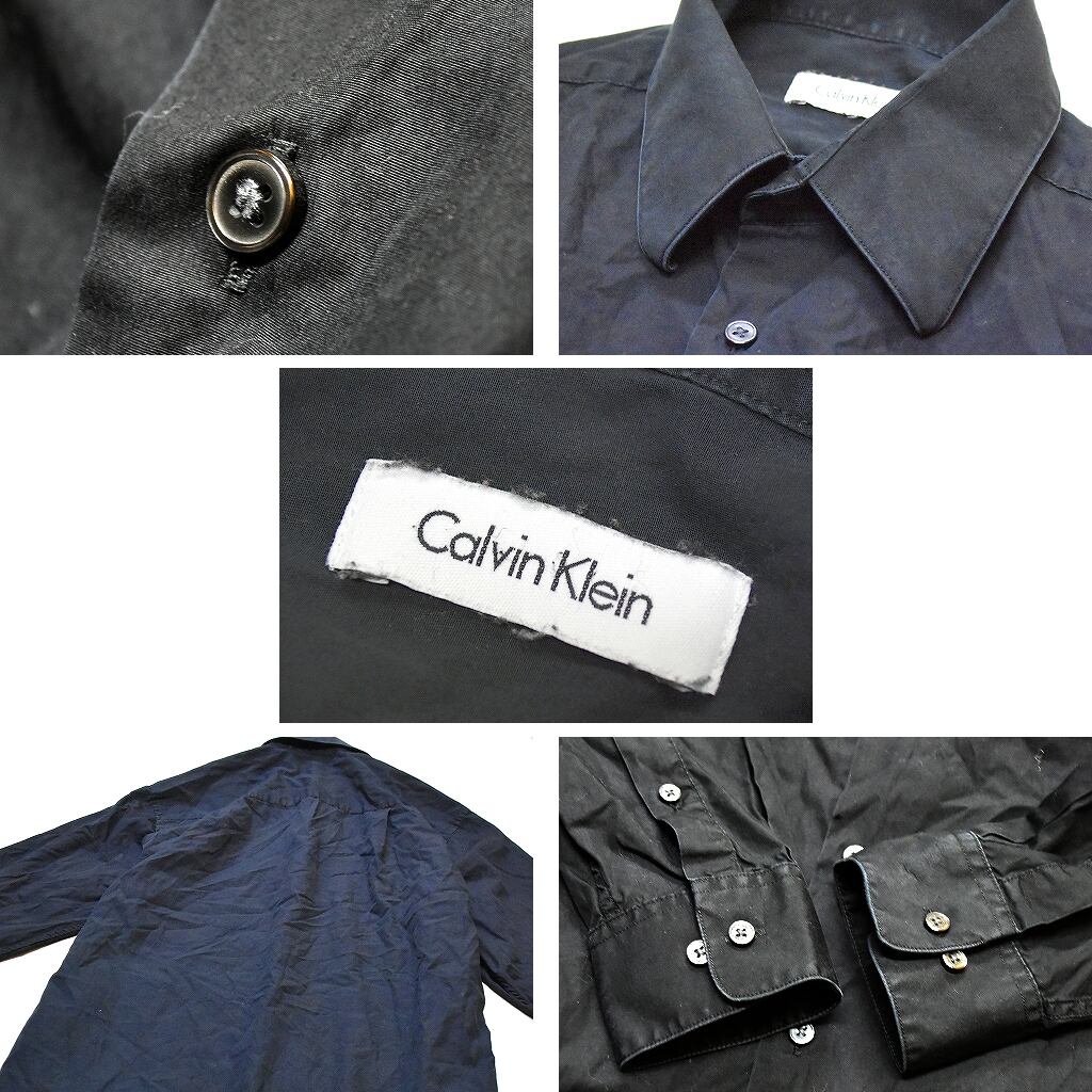 1点物◆カルバンクラインCK黒無地デザイン長袖シャツ古着メンズMLレディースOKアメカジブランド90sストリート/スポーツMix中古レトロ370349
