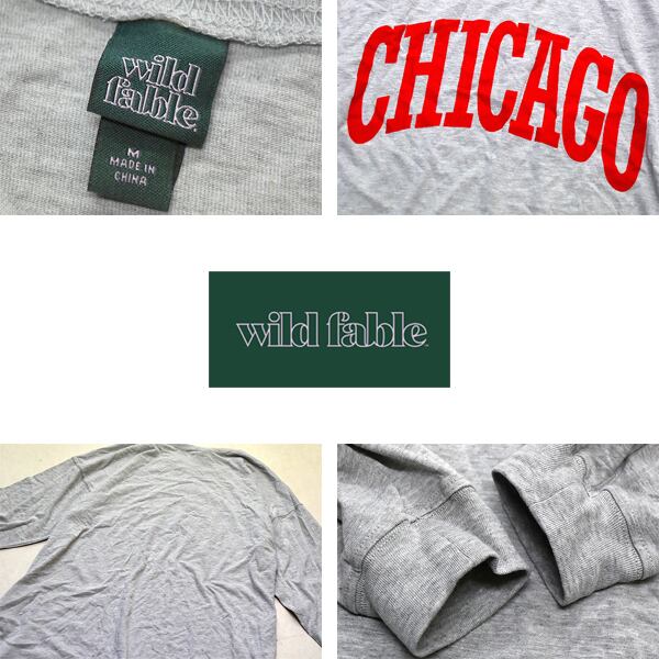 1点物◆WILD FABLEシカゴCHICAGOプリント長袖ロンTシャツ古着メンズMLレディースOKアメカジ90sストリート/スポーツブランド灰グレー370359