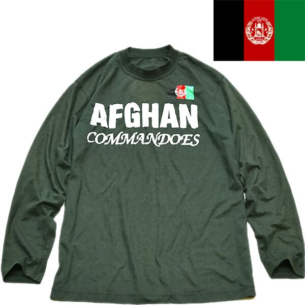 1点物◆アフガニスタン特殊部隊プリント長袖ロンTシャツ古着メンズMLレディースOKアメカジ90sストリート/スポーツ中古ブランド深緑370361
