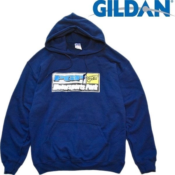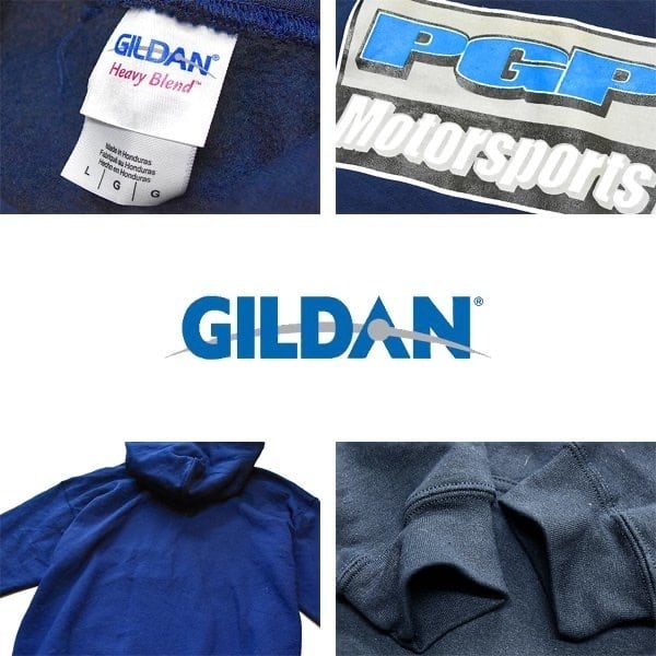 1点物◆ギルダンGILDAN紺プリントスウェットパーカー古着メンズXLレディースOKアメカジブランド90sストリート/スポーツ/トレーナー370314