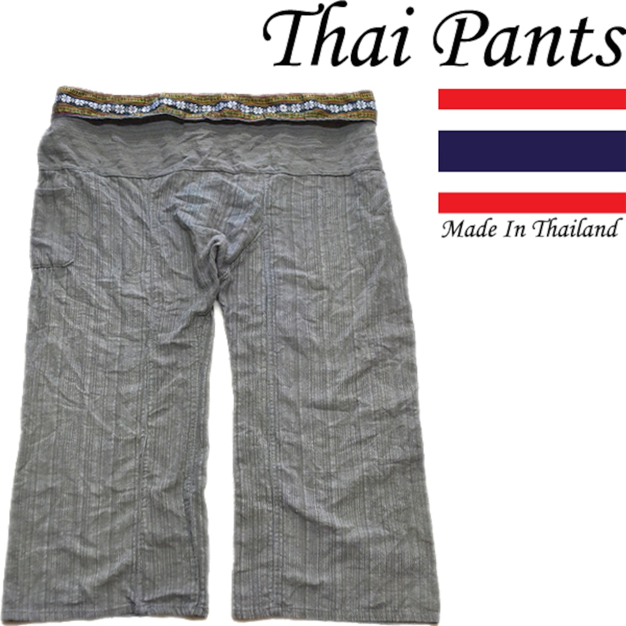 1点物◆本場タイパンツ柄イージーパンツ古着メンズXLレディースOKアメカジ90sストリートMixイージーパンツ黒灰色エスニックブランド370391