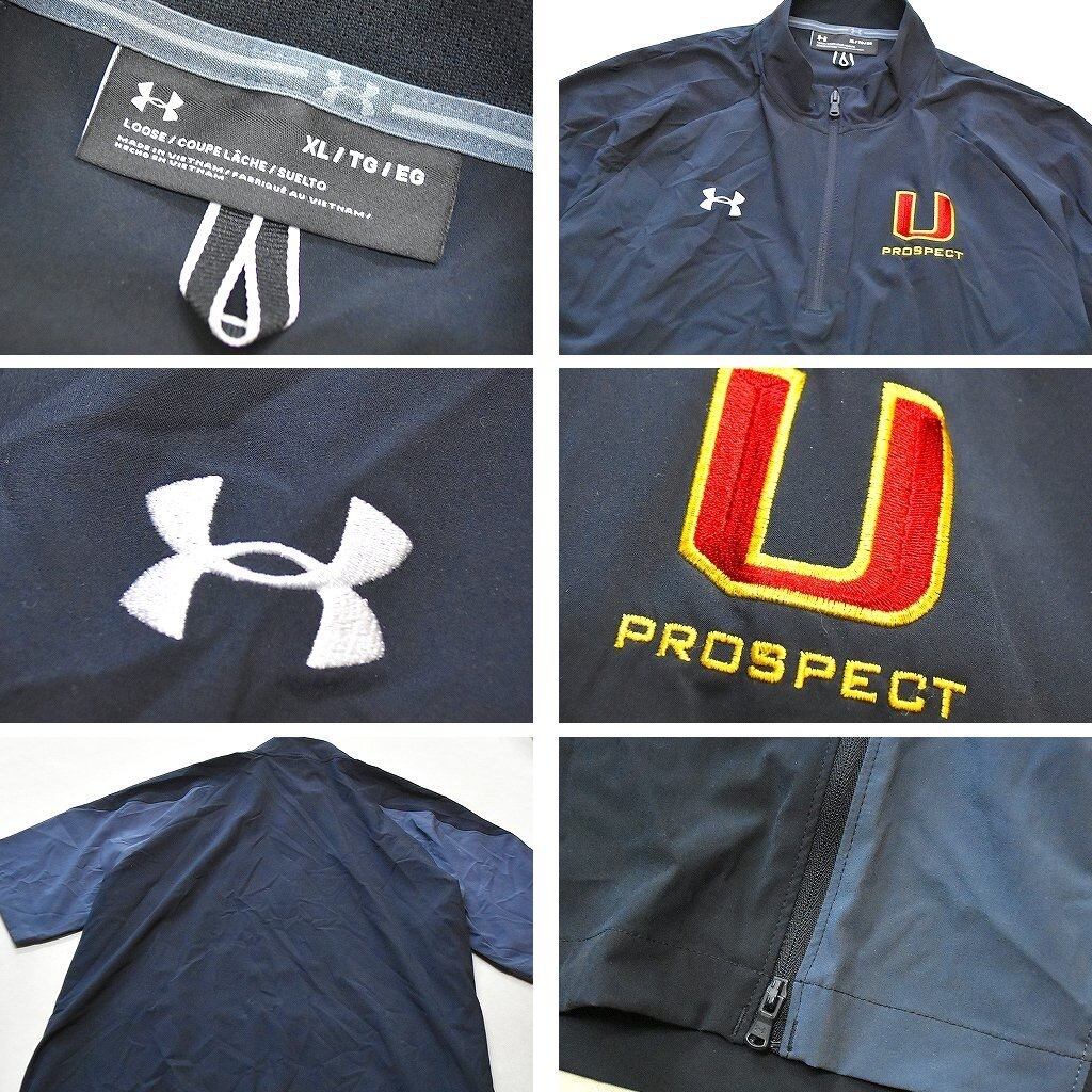 1点物◆アンダーアーマーUA半袖ナイロンプルオーバージャケット古着メンズ2XLレディースOKアメカジ90sストリート/スポーツ黒チーム370428