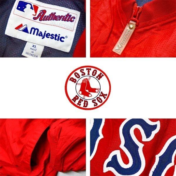 1点物◆MLBレッドソックスMajestic赤ナイロンプルオーバージャケット古着メンズ2XLレディースOKアメカジ90sストリート/スポーツ野球370430