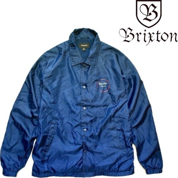 1点物◆ブリクストンBRIXTONバックプリント紺ナイロンコーチジャケット古着メンズMLレディースOKアメカジ90sストリート/スポーツ中古370429