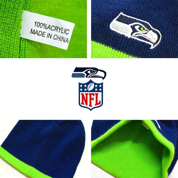 1点物◆シーホークスNFL紺ニット帽子ニットキャップ古着メンズレディースOKアメカジ90sストリート/スポーツMix中古ビーニー/アメフト370276