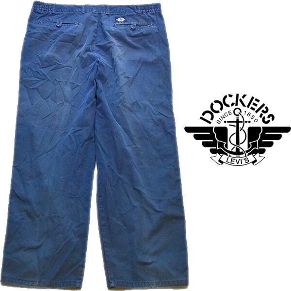 1点物◆リーバイス系ドッカーズ旧ロゴ紺チノパンツ古着メンズ34レディースOKアメカジ90sストリート/ブランド/ワイドスラックスパンツ370422