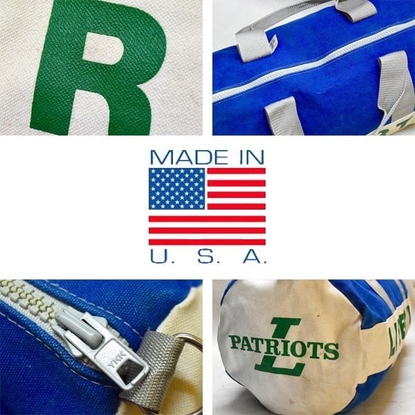 1点物◆カスタムメイドUSA製ビンテージ青白ボストンバッグ古着メンズレディースOKアメカジ90sストリート/バック鞄かばん/チームロゴ370561