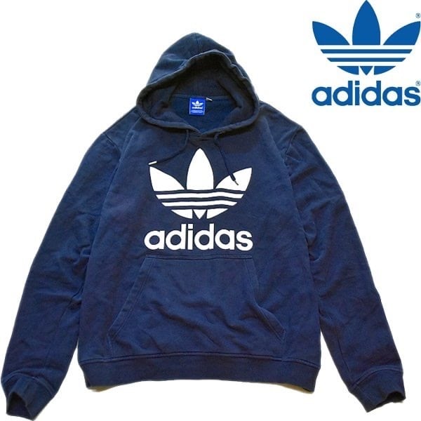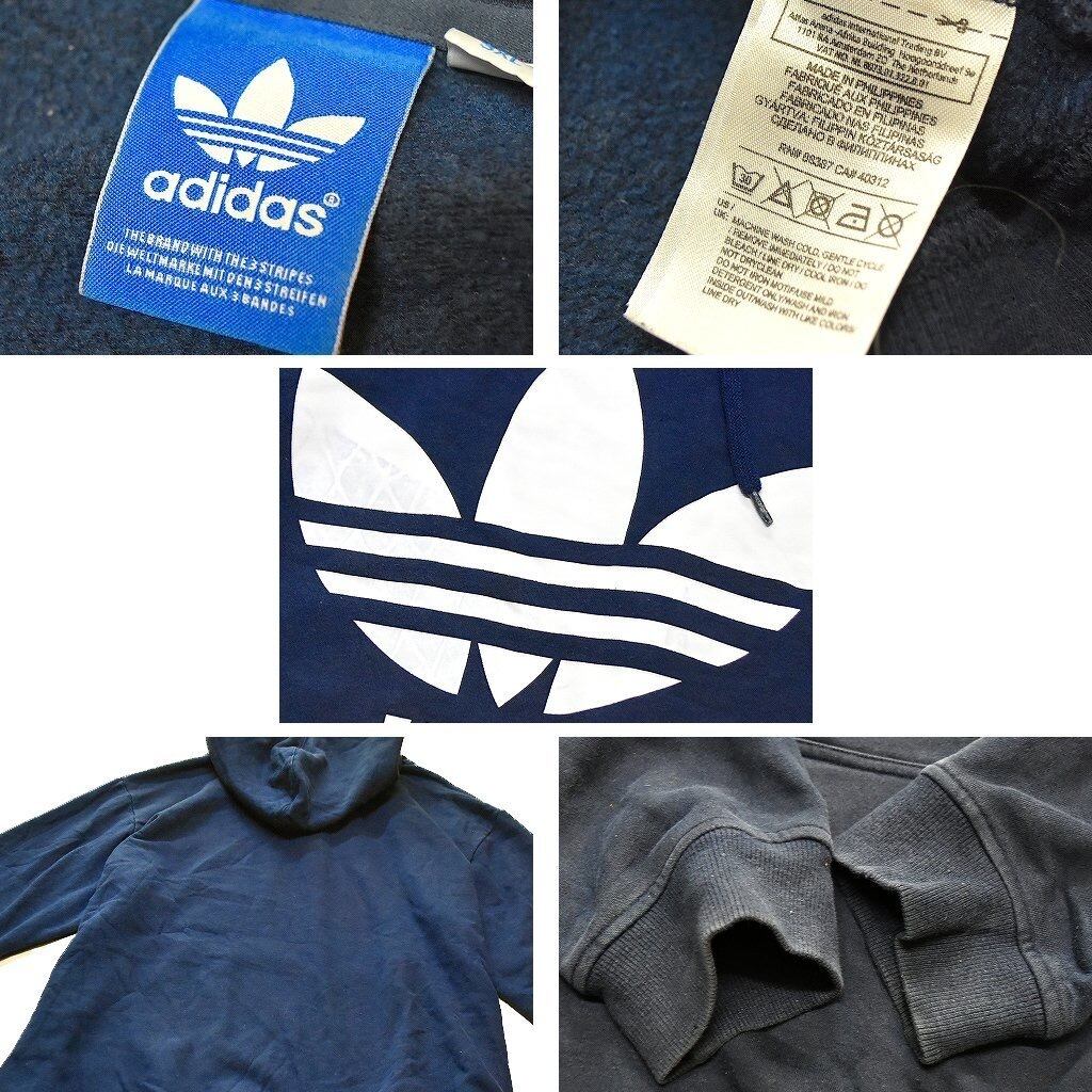 1点物◆アディダスadidas超ビッグサイズ紺スウェットパーカー古着メンズ4XLレディースOKアメカジ90sストリート/スポーツ/トレーナー370547