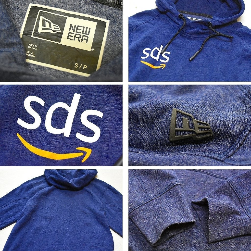1点物◆アマゾンSDS企業ロゴ紺プリントスウェットパーカー古着メンズSMレディースOKアメカジ90sストリート/スポーツ/トレーナー中古370546