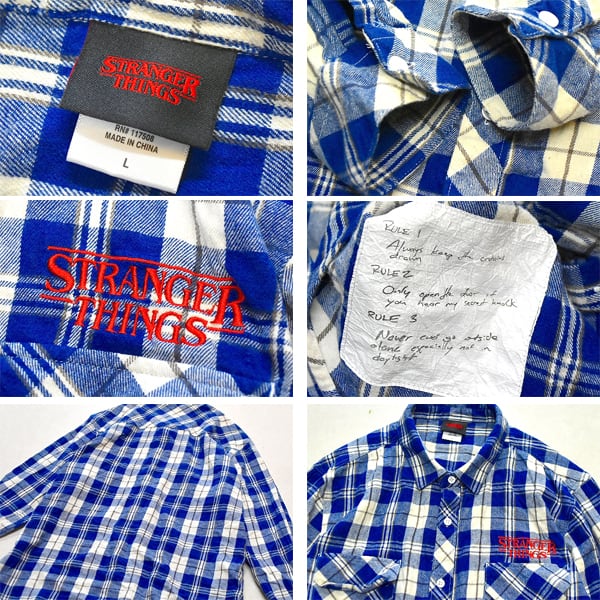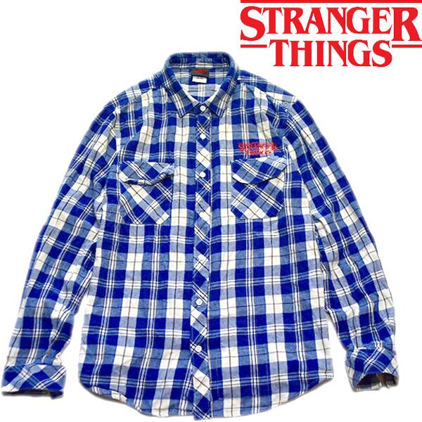 1点物◆ストレンジャーシングス青ネルシャツ長袖チェックシャツ古着メンズLレディースOKアメカジ90sストリートUSAブランド映画ドラマ370481