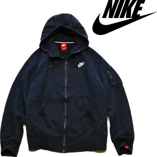 1点物◆ナイキNIKE黒ジップアップスウェットパーカー古着メンズMLレディースOKアメカジ90sストリートスポーツ中古ブランド/ブラック370641