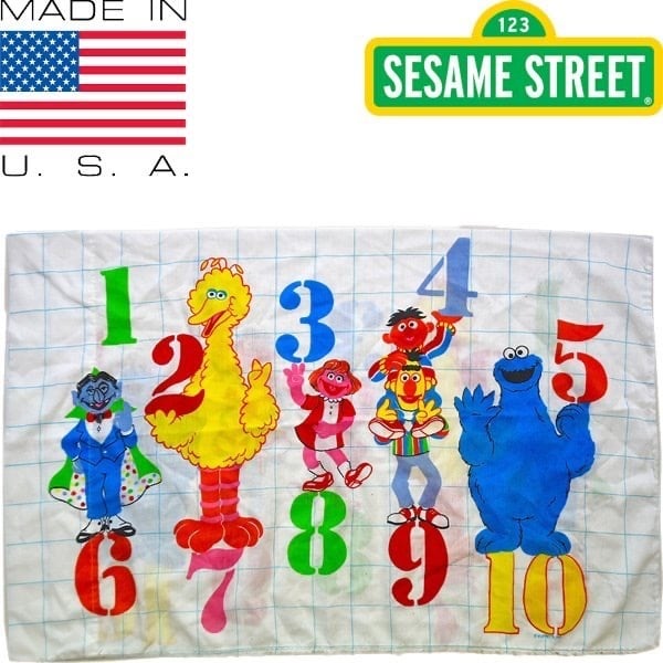 1点物◆ビンテージUSA製セサミストリート白ピローケース枕カバー古着メンズレディースOKアメカジ90sストリート雑貨ブランド寝具/中古370575