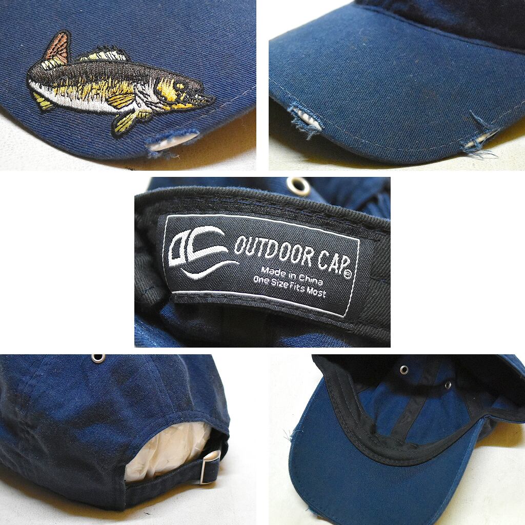 1点物◆USAブランド魚ロゴ刺繍ベースボールキャップ帽子/古着メンズレディースOKアメカジブランド90sストリート/スポーツ紺レトロ370680