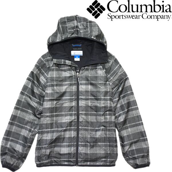 1点物◆コロンビアColumbiaチェック柄フード付きナイロンジャケット古着メンズレディースOKアメカジ90sストリート/スポーツ/グレー370769