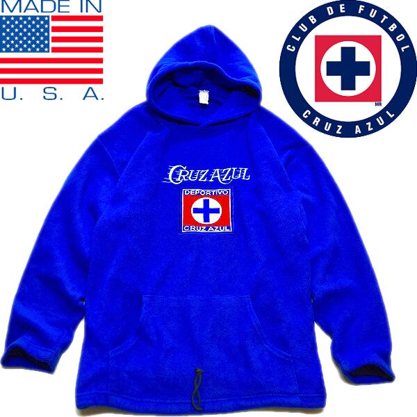 1点物◆USA製クルスアスル青サッカーフリースジャケット古着メンズXLレディースOKアメカジ90sストリート/アウトドア/チームブランド370936
