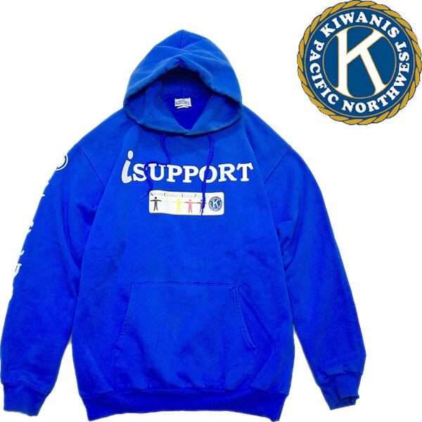 1点物◆キワニスP&Cバックプリント青スウェットパーカー古着メンズXLレディースOKアメカジブランド90sストリート/トレーナー/レトロ370956
