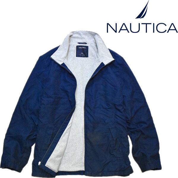 1点物◆ノーティカNAUTICA紺フリース裏地ナイロンジャケット古着メンズ3XLレディースOKアメカジ90sストリートブランド/ビッグサイズ370972
