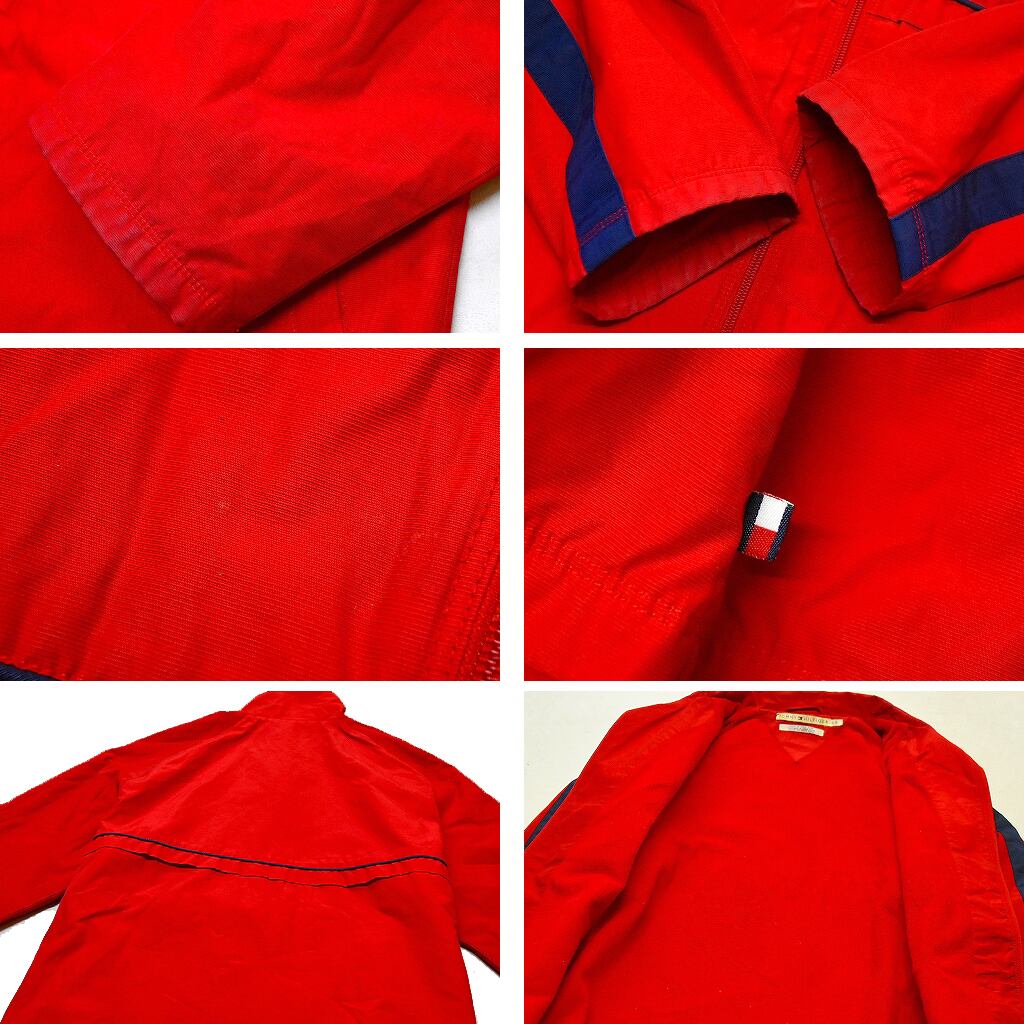 1点物◆トミーヒルフィガー赤フリース裏地ライン入りナイロンジャケット古着メンズMLレディースOKアメカジ90sストリートブランド中古370973