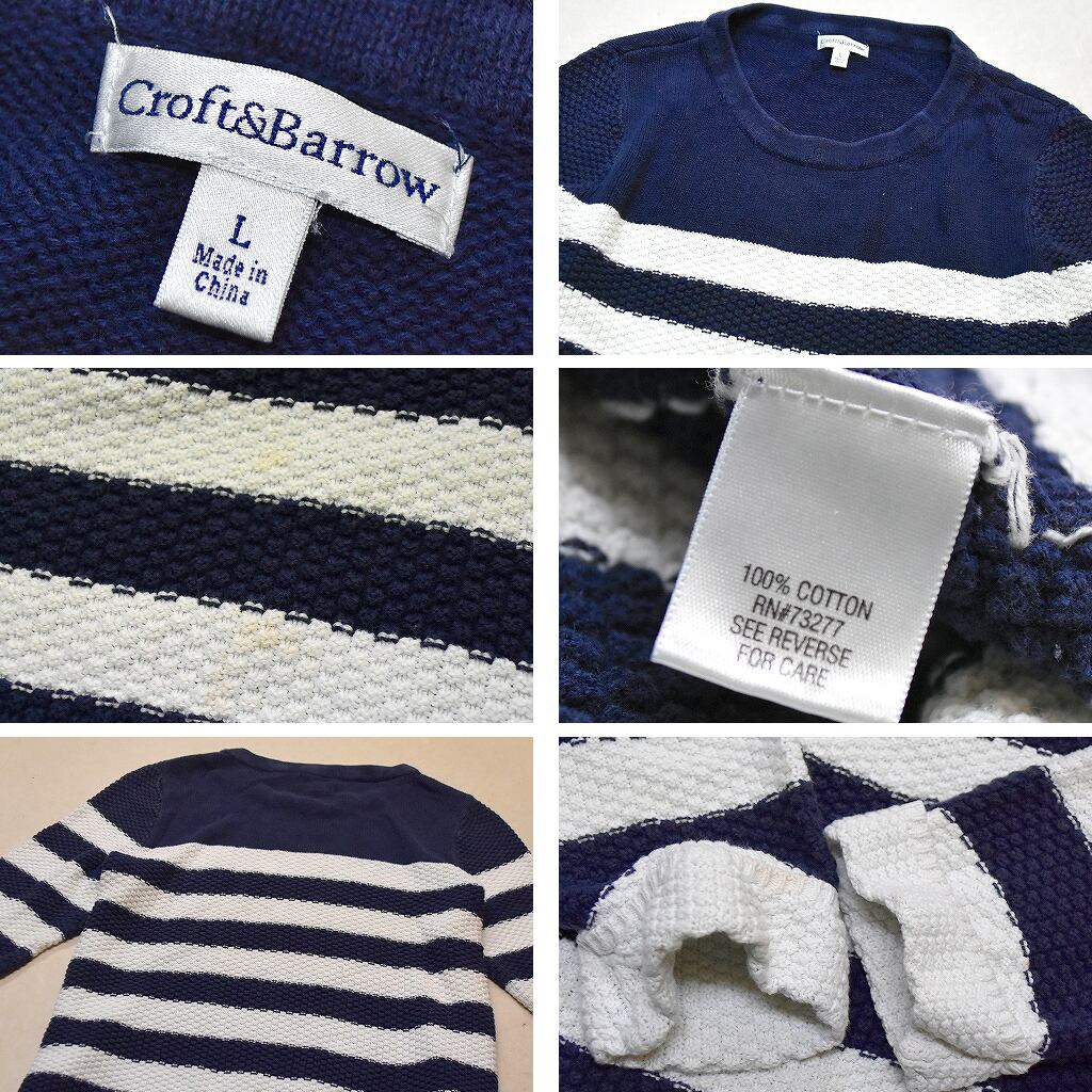 1点物◆Croft & Barrow紺白ボーダー柄コットンニットセーター古着レディースXLメンズOKアメカジ90sストリート/スポーツMixブランド370968
