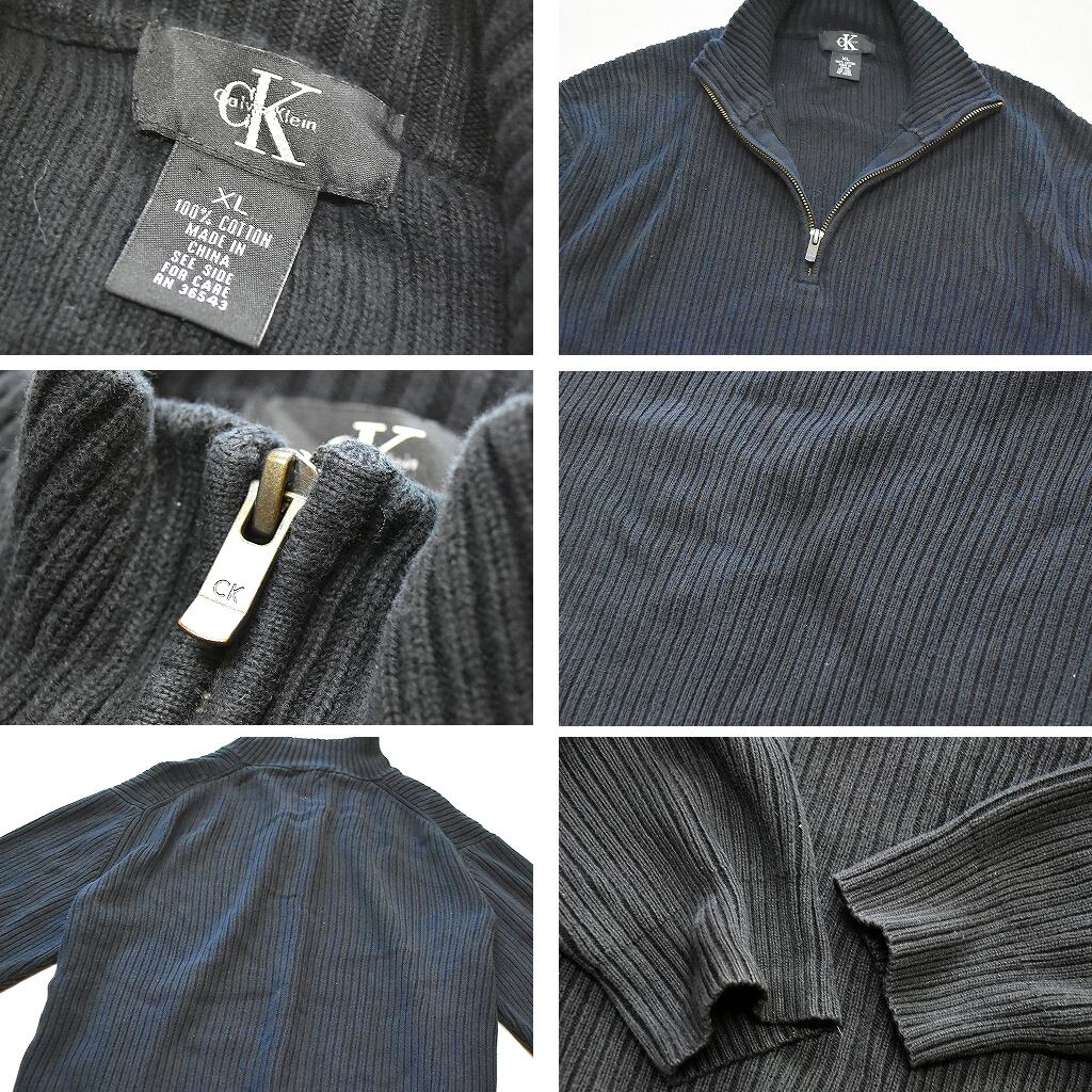 1点物◆カルバンクラインCKハーフジップ黒リブ編みニットセーター古着メンズ2XLレディースOKアメカジブランド90sストリート/スポーツ371047