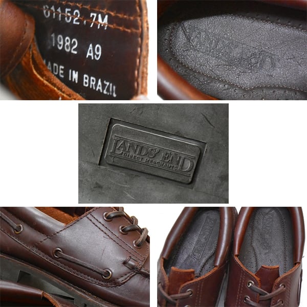 1点物◆ランズエンド茶ボートシューズ革靴デッキシューズ古着メンズ25レディースOKアメカジ90sストリート/スポーツ/レトロブランド371074