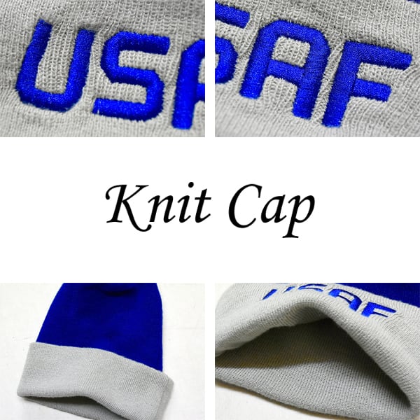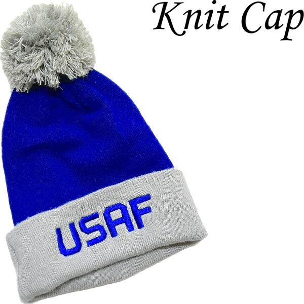 1点物◆アメリカ空軍USAFグレー青ボンボンニット帽ニットキャップ古着メンズレディースOKアメカジ90sストリート/スポーツ帽子レトロ371158