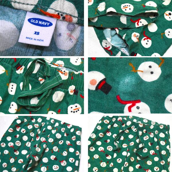 1点物◆オールドネイビー雪だるま柄パジャマパンツ古着メンズXSレディースOKアメカジ90sストリートMixイージーパンツGAPブランド緑371187
