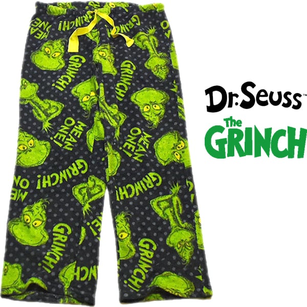 1点物◆ドクタースース黒緑グリンチ柄フリースパジャマパンツ古着メンズレディースOKアメカジ90sストリート/イージーパンツ/ブランド371193