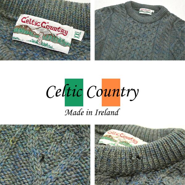 1点物◆アイルランド製ビッグサイズ深緑ケーブルニットセーター古着メンズ3XLレディースOKアメカジブランド90sストリート/スポーツ371234