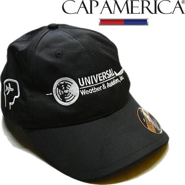 1点物◆ユニバーサルウェザー&アビエーション黒キャップ帽子US古着メンズレディースOKアメカジブランド90sストリートMixスポーツ中古371217
