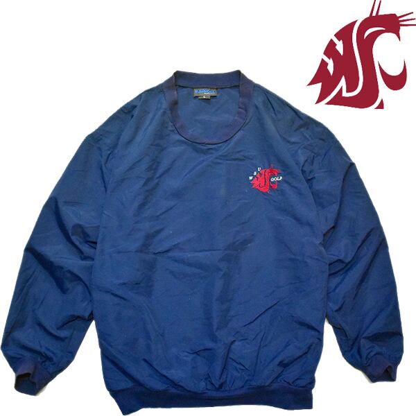1点物◆ワシントン州立大学WSU紺ナイロンプルオーバージャケット古着メンズL/XLレディースOKアメカジブランド90sストリート/スポーツ371322
