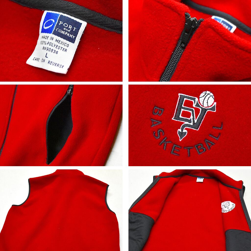 1点物◆メキシコ製ビッグサイズ赤チームロゴ刺繍フリースベスト古着メンズXLレディースOKアメカジ90sストリートスポーツ/ジャケット371307