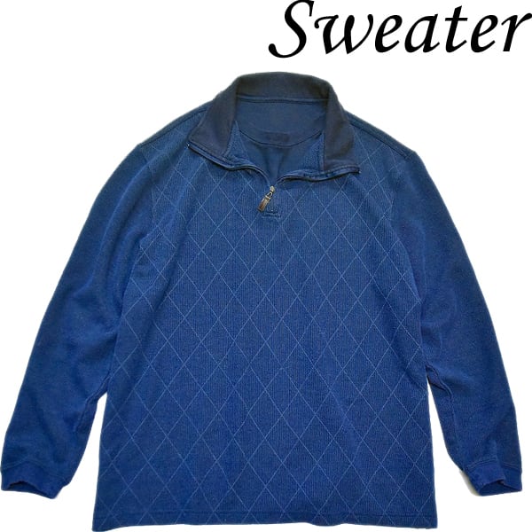 1点物◆ビッグサイズ重ね着風リブ編み紺ハーフジップニットセーター古着メンズレディースOKアメカジブランド90sストリート/スポーツ371256